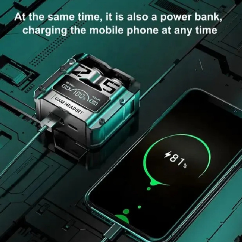 M25 7.1 2.4G ব্লুটুথ অরিকুলার LED ডিসপ্লে গেমিং ইন-ইয়ার ইকোটিউর ওয়্যারলেস ওহরোর হেডফোন ইয়ারফোন ইয়ারবাডস পাওয়ারব্যাঙ্ক সহ