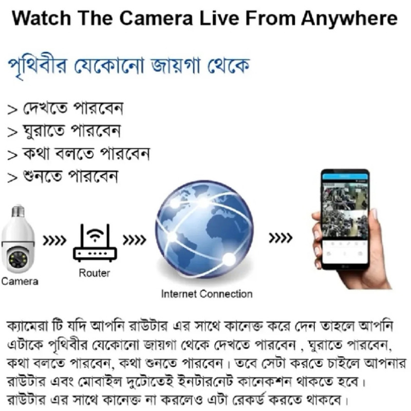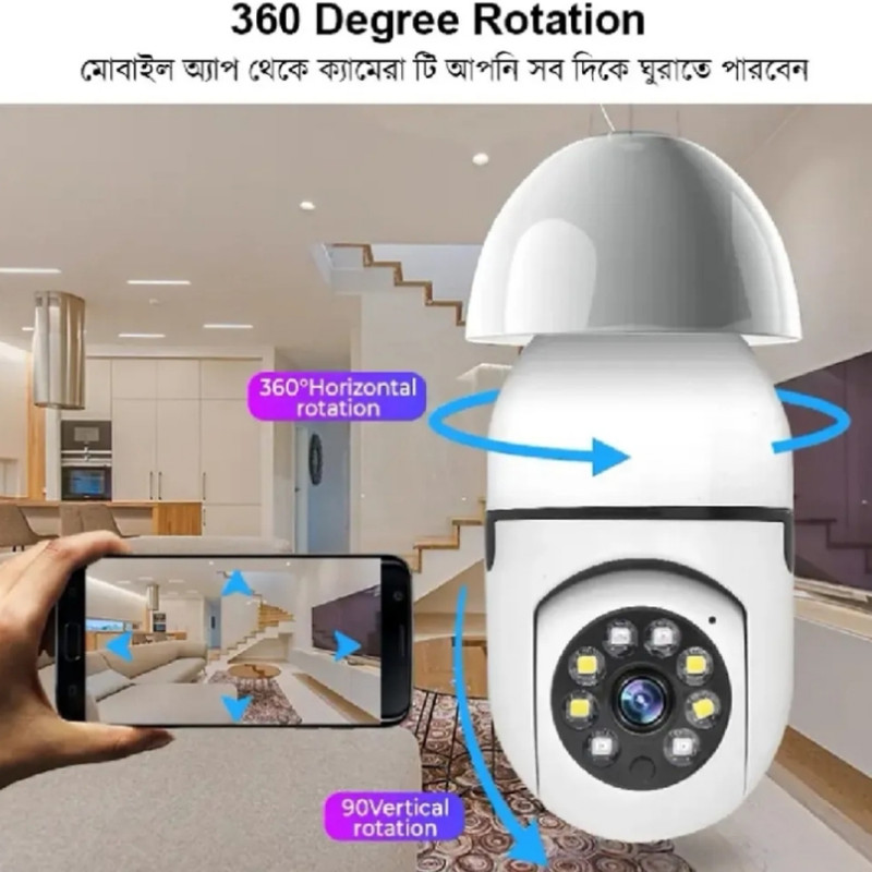 V380 Pro Q16 বাল্ব ওয়াইফাই সিসিটিভি ক্যামেরা - নাইট ভিশন সহ 360° PTZ আইপি ক্যাম এবং মোশন ডিটেকশন সহ টু-ওয়ে অডিও এবং মোবাইল ভিউ সহ HD ভিউ এইচডি রেকর্ডিং এবং মোবাইল অ্যাক্সেস